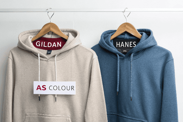AS Colour hoodies use the thickest, most premium fabric. Gildan offers affordability but lacks longevity, while Hanes provides a good middle ground.